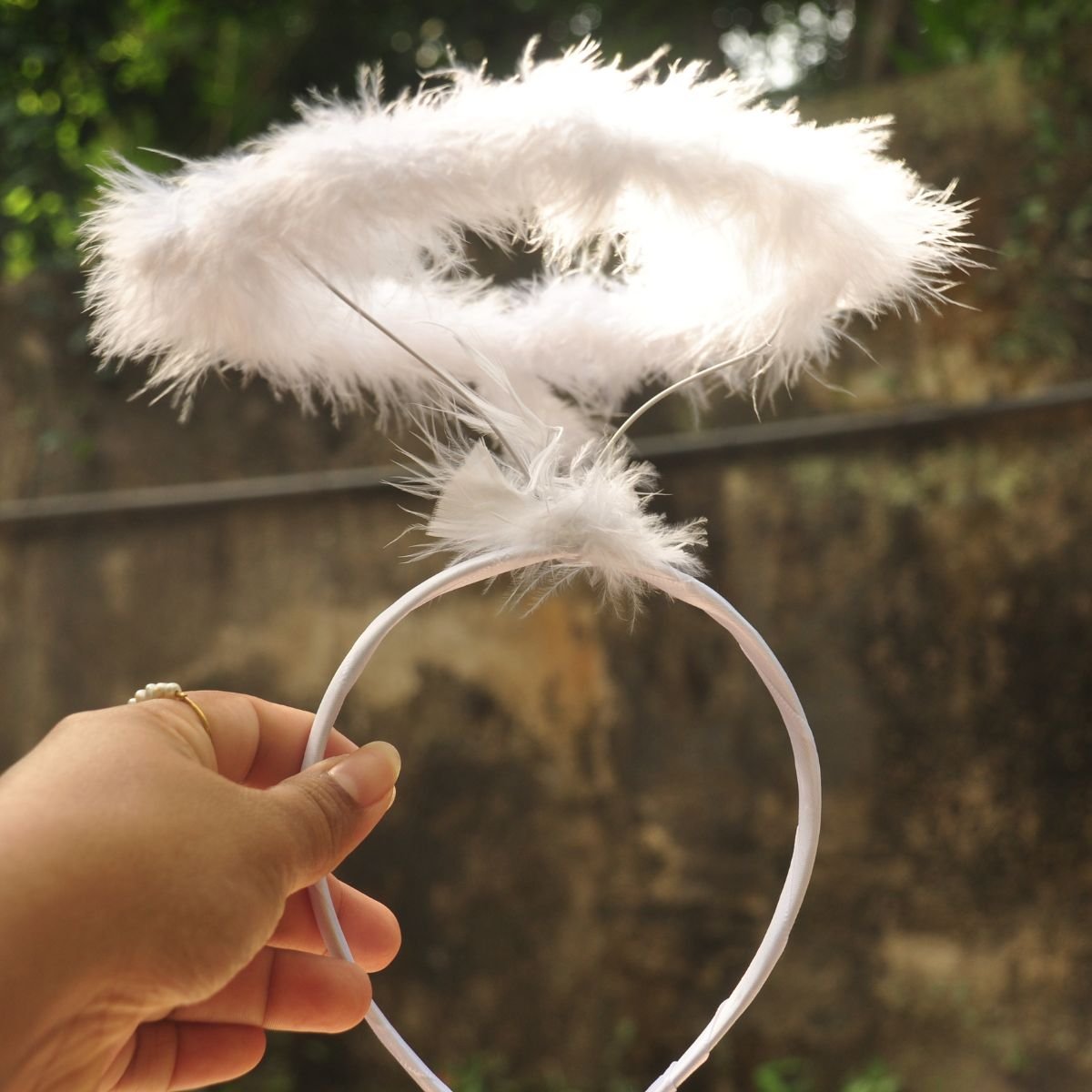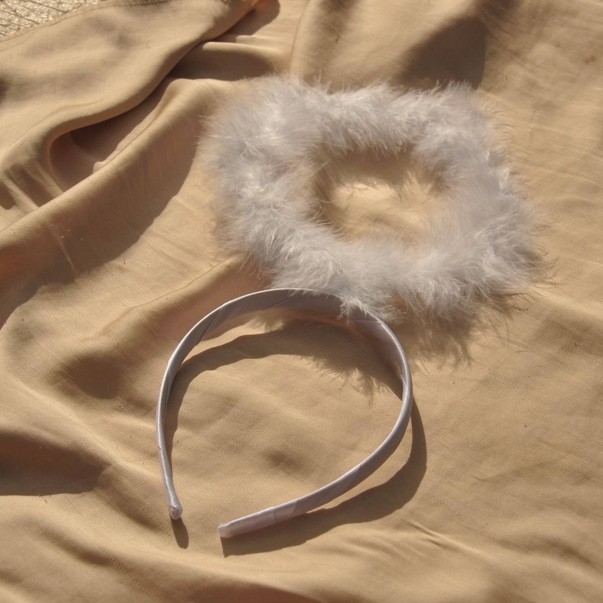 Colour – White feather halo and white headband.