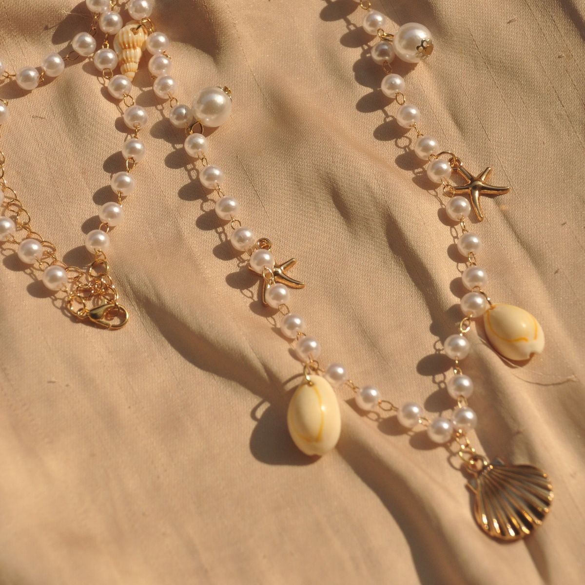 Colour – White pearl beads, gold clasp