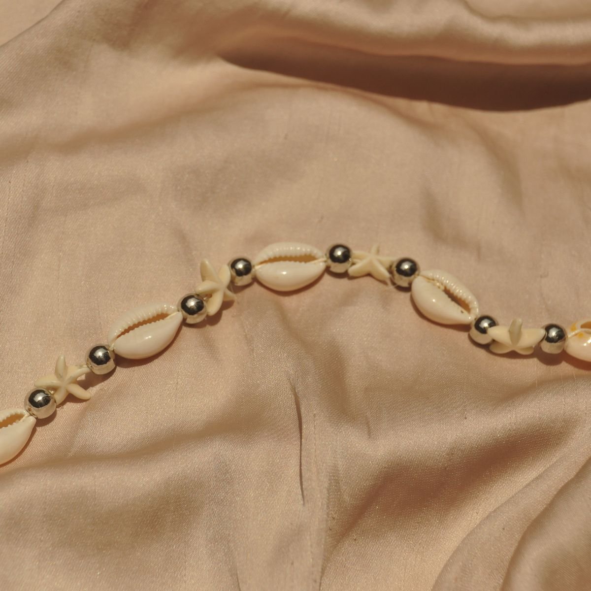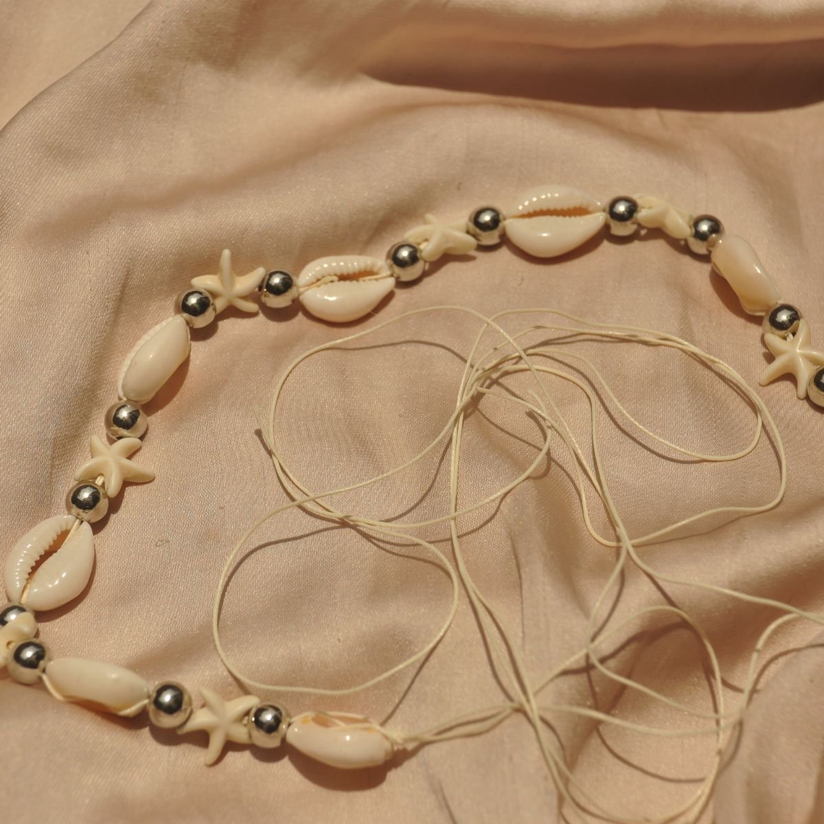 Colour – Beige starfish and cord, silver beads