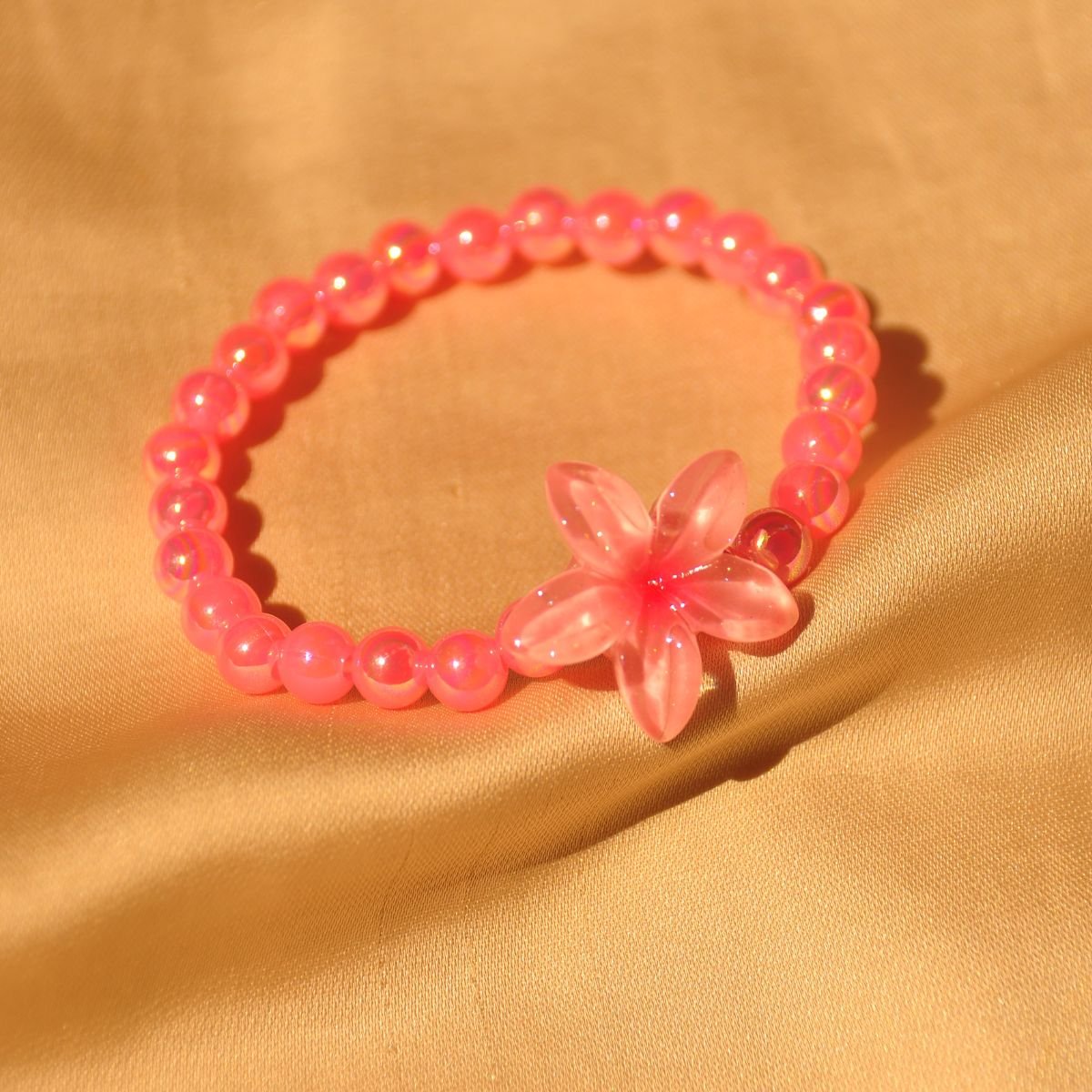 Bright pink bead floral stretch bracelet