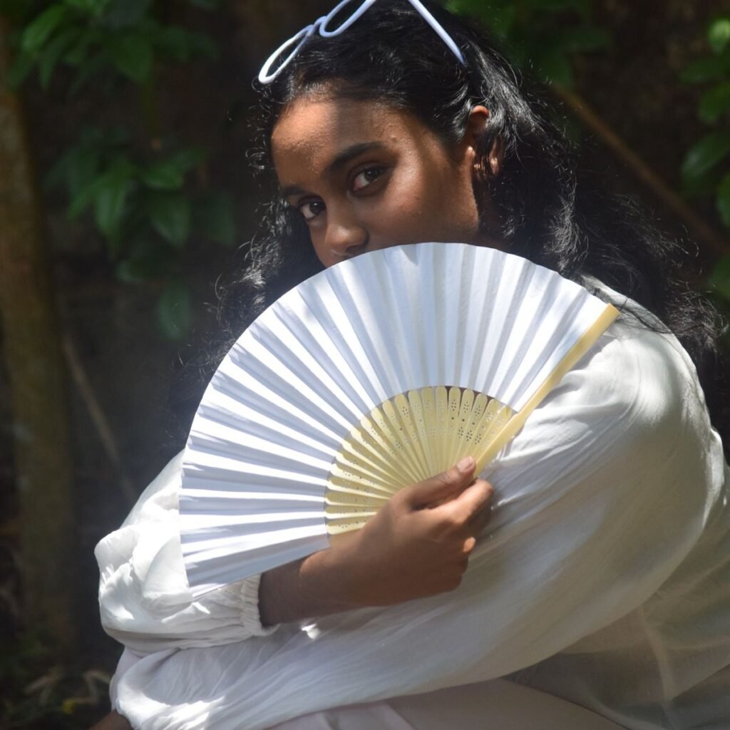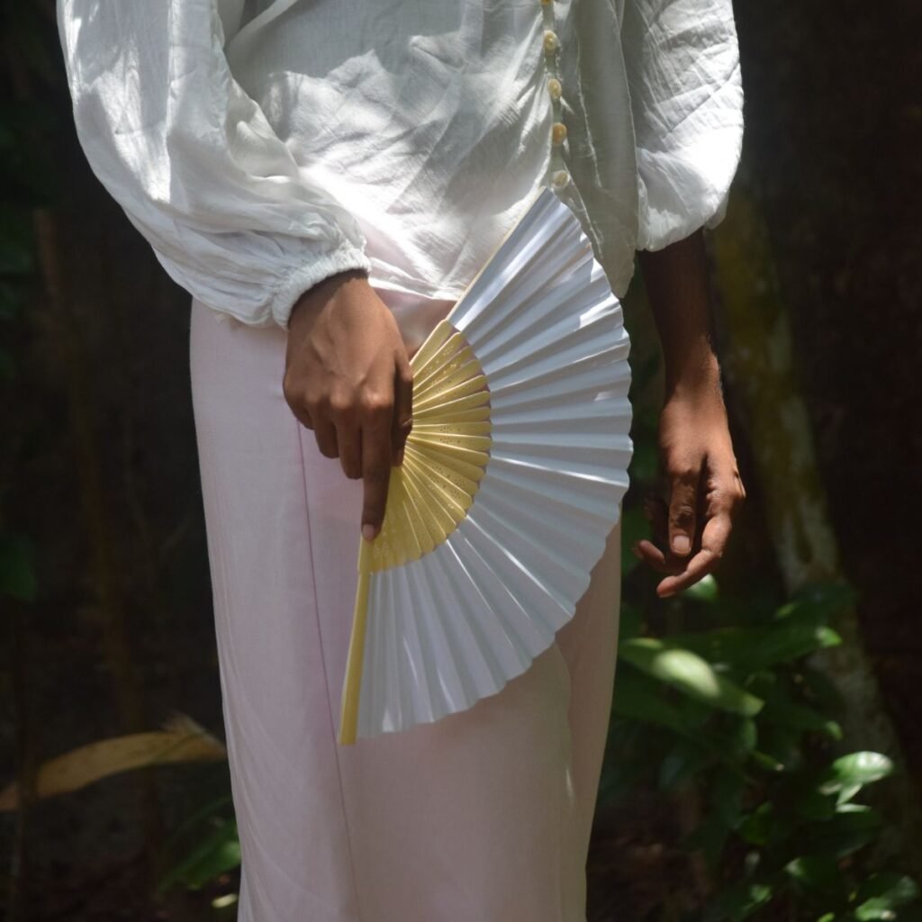 Elegant white paper fan — perfect for bridal parties, shoots & events 🤍