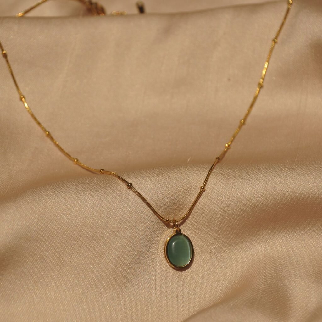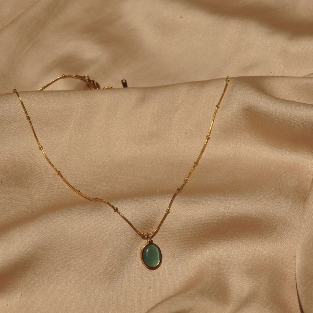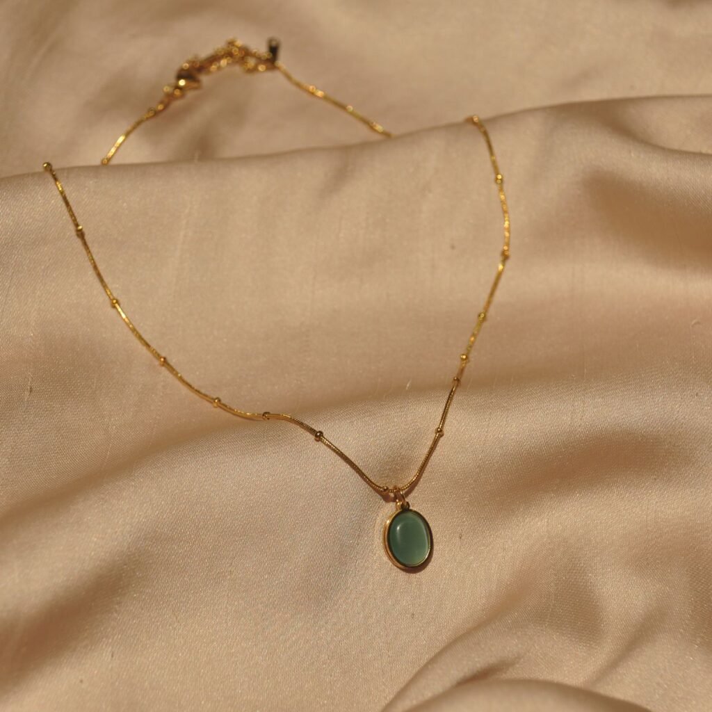 Chain length – 39cm, extendable by 4cm, pendant – 1.2cm x 1cm